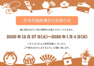 年末年始のお知らせ